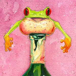 Paper Art Print-Martini, Whimsical Frogs "Hey Look" Bar Art
