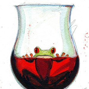 Paper Art Print-Martini's, Frogs, Tequila "The Barbecue" Whimsical Frogs and Tequila