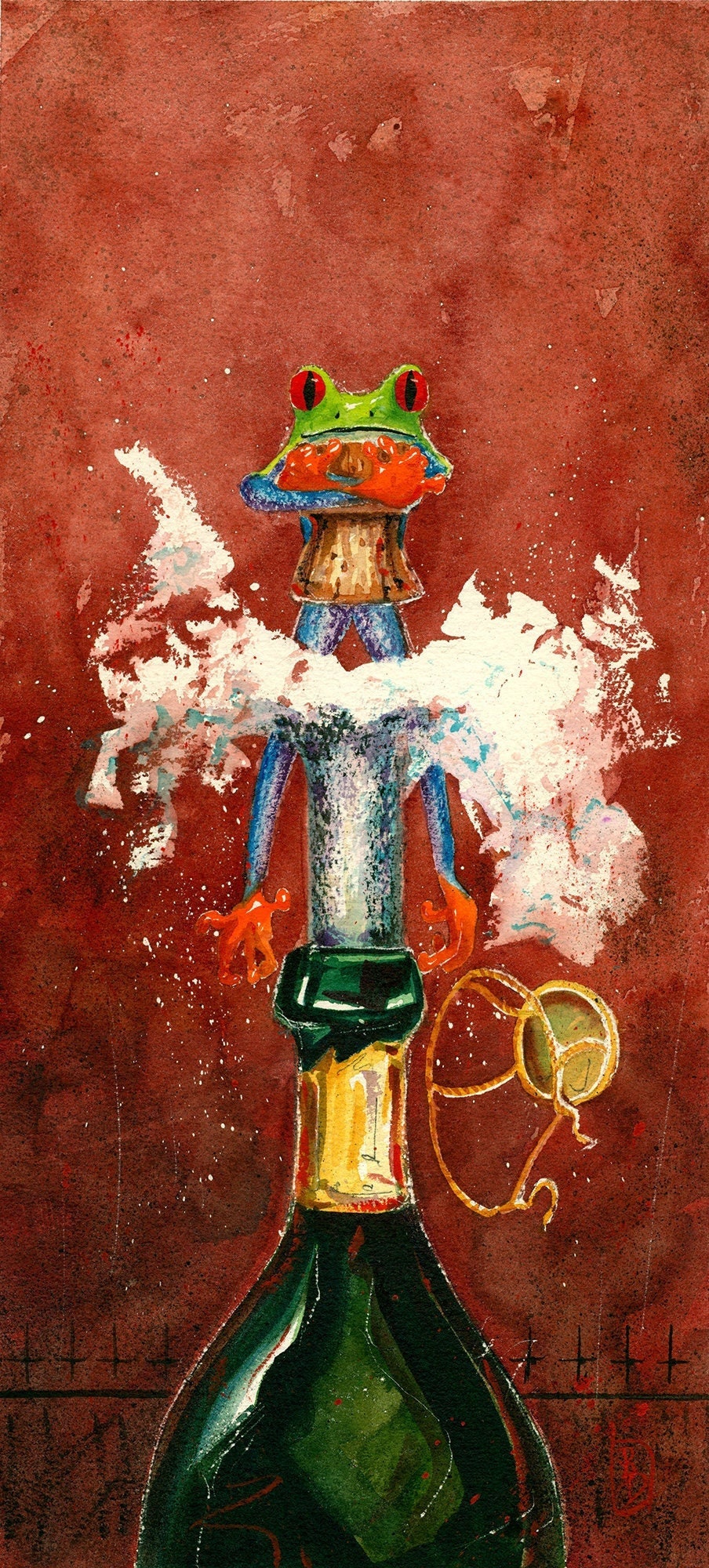 Paper Art Print-Wine, Frogs "What The!" Whimsical, frogs and Wine Print