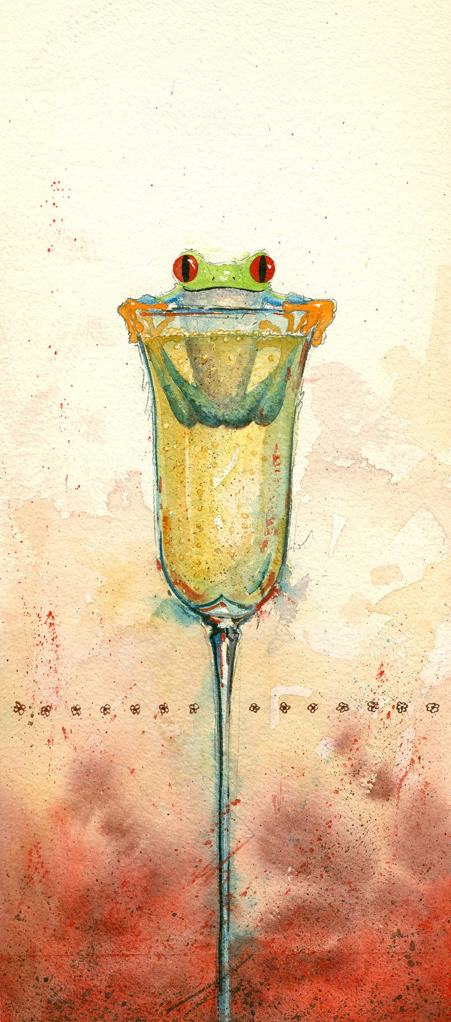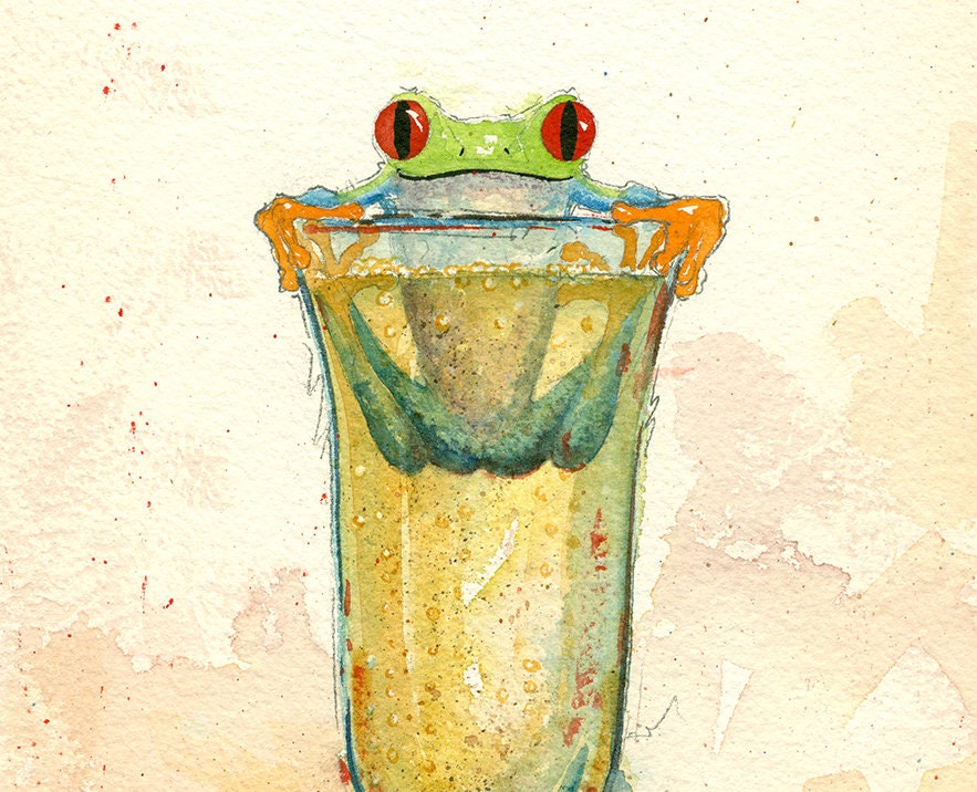 Paper Art Print-Wine, Frogs "A Little Bubbly" Whimsical, frogs and Wine Print