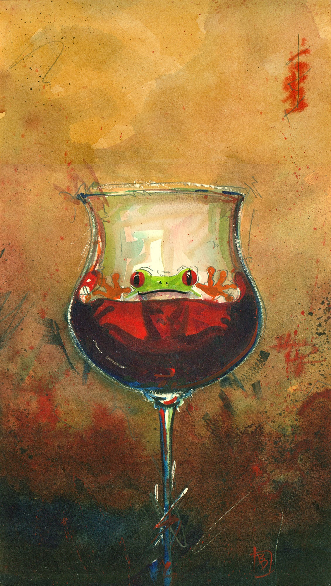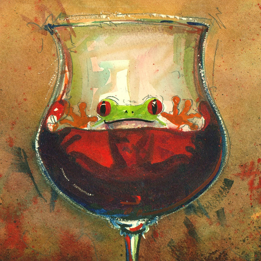 Canvas Art Print-Wine, Whimsical Frogs "Uh Oh #3" Whimsical Art, frogs and Wine