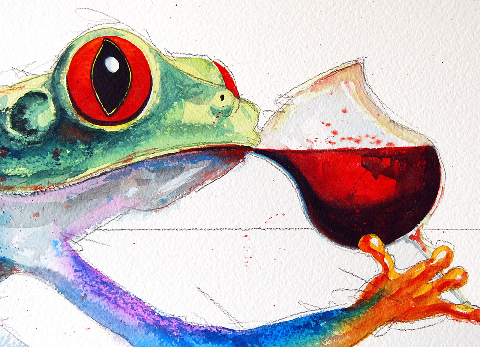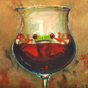 Canvas Art Print-Wine, Whimsical Frogs "The Taster" Whimsical Art, frogs and Wine