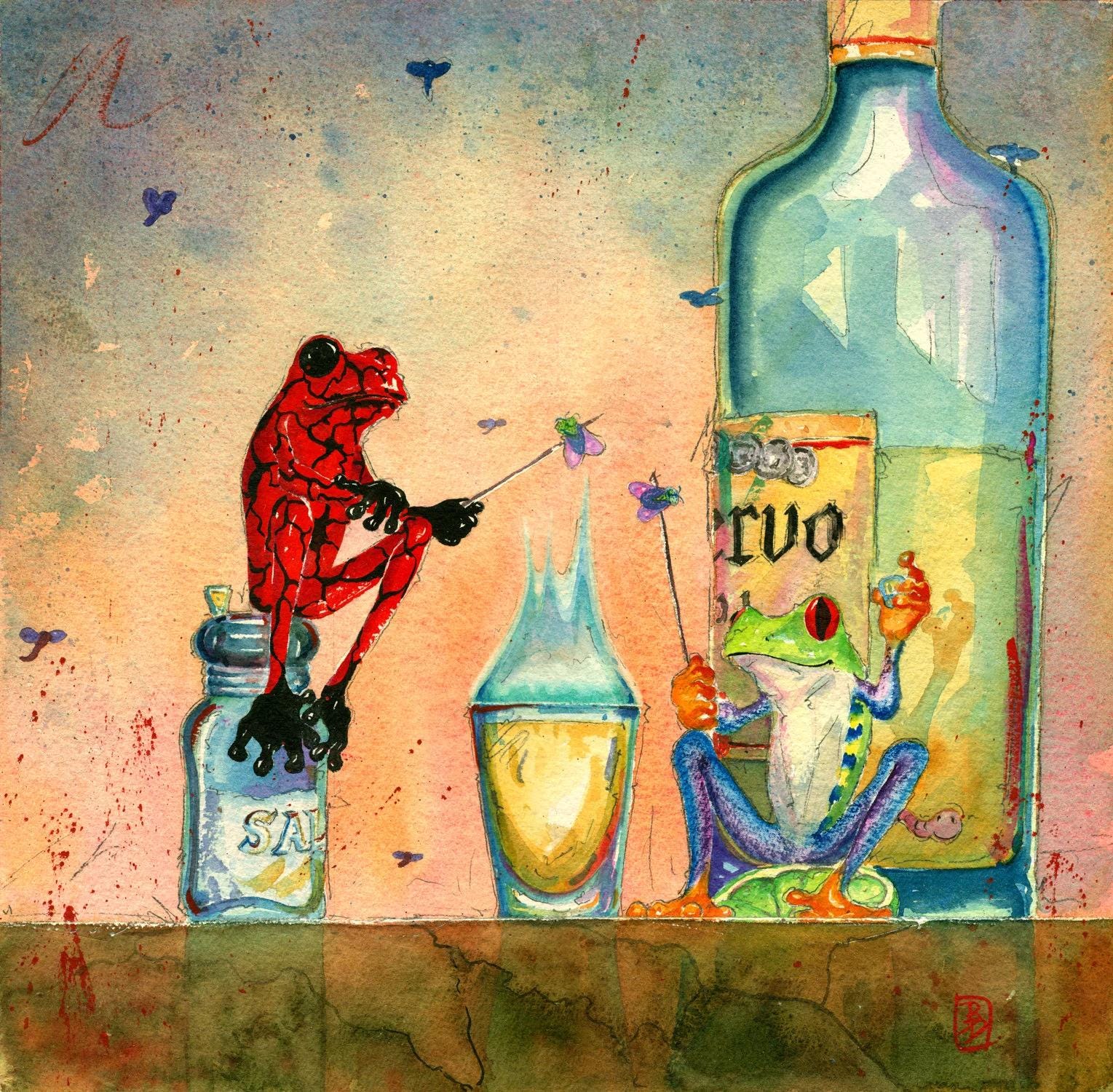 5 Paper Prints on watercolor paper- "What", "Get That Bud". "The Porter",