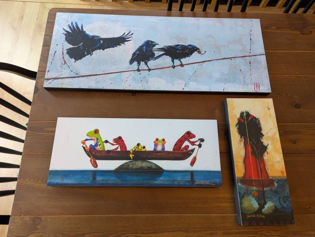 This is a print of an original Watercolor painting I created and all of my prints are signed and numbered. The paper print is on watercolor paper and the print on wood is on canvas, I build wood panels on which I mount the canvas and then UV varnish. The edge of the panel is torched and varnished so it has a unique finish. The picture is wired and ready to hang.